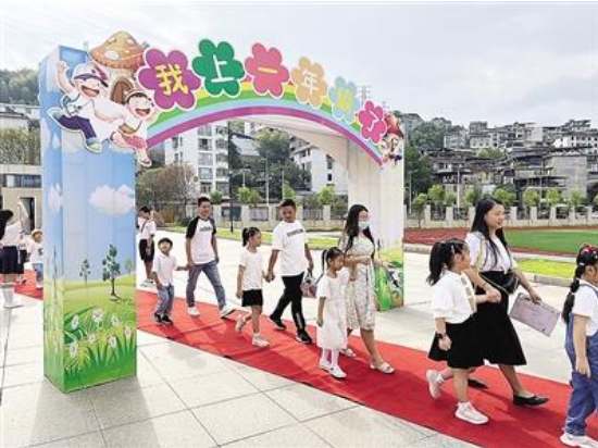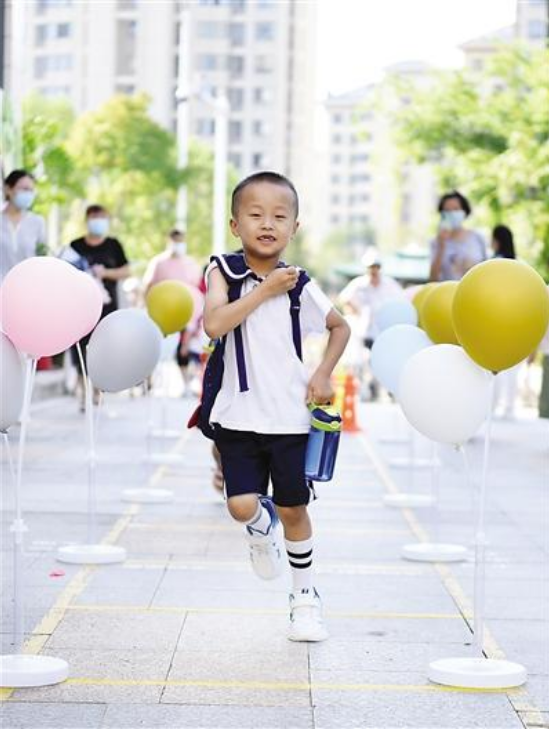 9月1日,在南平市实验幼儿园云谷一园,孩子们欢快地进入校园。(黄杰敏 摄)
