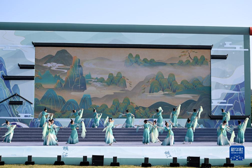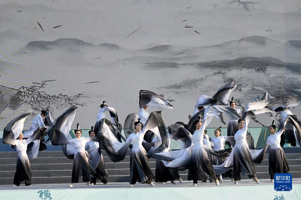 10月15日,演员在第35届马鞍山李白诗歌节开幕式现场表演。 当日,第35届马鞍山李白诗歌节在安徽省马鞍山市滨江文化公园开幕。本届诗歌节举办文艺演出、诗歌论坛、诗书画展览、群众诗歌诵读等活动,采用“主会场+分会场”联动的方式,在马鞍山市各县区设置分会场,让更多的市民参与到诗歌节的活动中,感受中华传统文化的魅力。 新华社记者 黄博涵 摄
