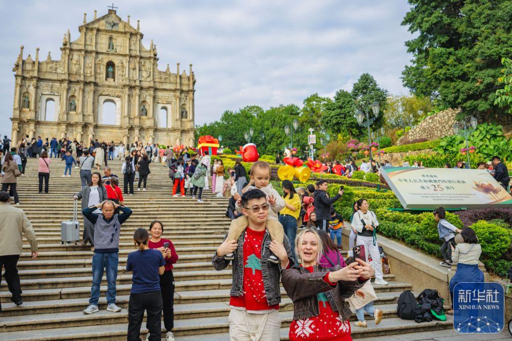 12月12日,游客坐在澳门岗顶剧院的台阶上。 澳门历史城区保留着葡萄牙和中国风格的古老街道、住宅、宗教和公共建筑,见证了东西方美学、文化以及建筑的交融。作为联合国教科文组织《世界遗产名录》遗产地,这片城区以其独特的历史建筑和文化遗存闻名。大三巴牌坊是澳门最具代表性的地标,昔日圣保禄大教堂的遗迹展现了中西合璧的建筑艺术。妈阁庙作为澳门历史最悠久的庙宇之一,体现了中国传统文化特色,是当地海上文化的重要代表。议事亭前地以其波浪形石板路和周围的欧式建筑,成为文化活动和公共生活的中心。郑家大屋是一座大型传统中式豪宅,是晚清时期著名思想家郑观应的故居,融合了中西建筑风格。大炮台作为澳门重要的历史防御遗址,如今成为俯瞰澳门城市景观的最佳地点之一。 新华社记者 朱炜 摄影报道
