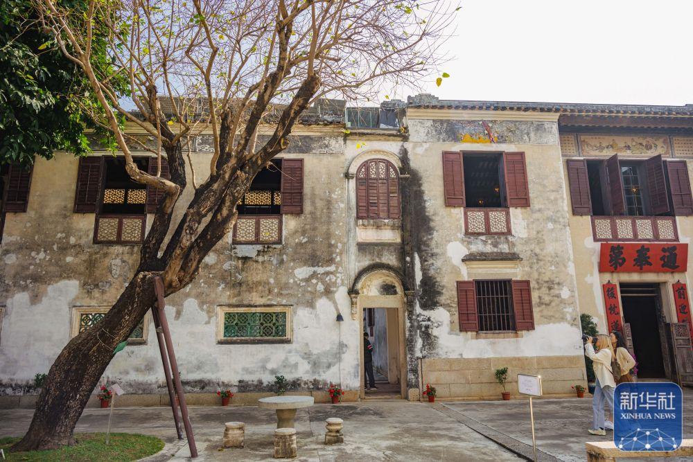 12月12日,游客在澳门郑家大屋游览。