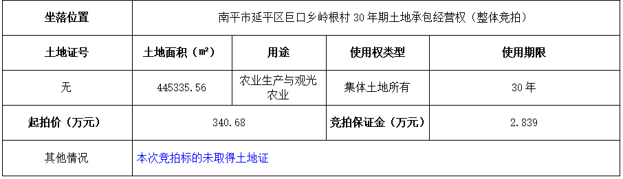 南平市延平区巨口乡岭根村30年期土地承包经营权(整体竞拍)