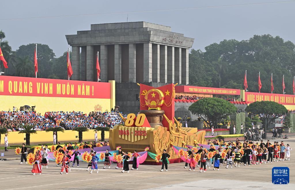 这是9月2日在越南河内巴亭广场拍摄的八月革命暨国庆80周年纪念活动现场。新华社记者 李响 摄 越共中央总书记苏林致辞表示,80年前,胡志明主席在巴亭广场发表《独立宣言》,宣告越南民主共和国的诞生,开启了越南独立与自由的新纪元。苏林说,面向未来,越南共产党确立了2045年建国100周年的目标,将越南建设成富强、繁荣、幸福的国家,这是全民族的渴望。