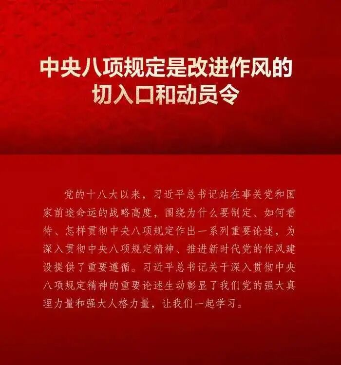 【锲而不舍落实中央八项规定精神】中央八项规定是改进作风的切入口和动员令