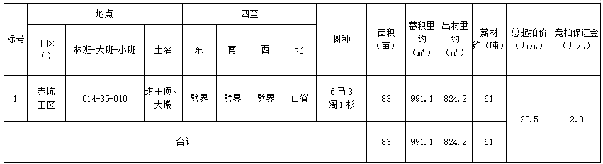 托,定于2025年9月30日上午9:00,通过延平区阳光平台(http://ypygpt.zgpm.com/)举行公开网络竞价: 一、竞拍标的:南平市延平区赤坑工区“琪王顶、大墘”一片山场的林木生产销售权(整体竞拍)(采伐类型:主伐,采伐方式:皆伐;面积83亩,总蓄积量约991.1m³,出材量约824.2m³,总起拍价23.5万元。具体详见下表: 南平市延平区赤坑工区“琪王顶、大墘”一片山场的林木生产销售权(整体竞拍)一览表 二、本次竞拍山场的起拍价不含设计费、评估费两项费用的价格,该两项的费用由买受人另外支付,具体详见《竞拍规则》。 三、竞拍保证金及平台报名截止时间 竞拍保证金截止时间:具体竞拍保证金详见以上表格,于2025年9月29日下午5时前; 平台报名截止时间:即日起至标的开拍前半小时。 报名时凭竞拍保证金缴存凭据确认竞买人资格。具体办理报名、看样、缴纳竞拍保证金等相关手续,请有意竞买人与我中心联系。 竞拍保证金汇入以下指定账户: 户名:南平市延平区公共资源交易中心; 账号:9558831406000015950; 开户行:中国工商银行股份有限公司南平延平支行。 四、展示地点:标的物所在地;展示时间:2025年9月22日起。 五、联系地址及详情咨询电话: 中心地址:南平市延平区公共资源交易中心(南平市延平区八一路439号南平市延平区政务服务中心4楼) 中心联系人:0599-8801022小张。 看山场联系人:13950675050戴建华。 六、有关竞拍的其他事项及规定详见《竞拍规则》。 微信公众号:延平区政务服务中心公众号。 发布竞拍公告及规则的媒介:南平市公共资源交易中心延平区分中心(https://ggzy.np.gov.cn/yp/)、延平区阳光平台(http://ypygpt.zgpm.com/)、中国拍卖行业协会网站、延平区人民政府网(http://www.ypzf.gov.cn/)、延平新闻网。 南平市延平区公共资源交易中心 中拍平台网络科技股份有限公司 2025年09月22日 |