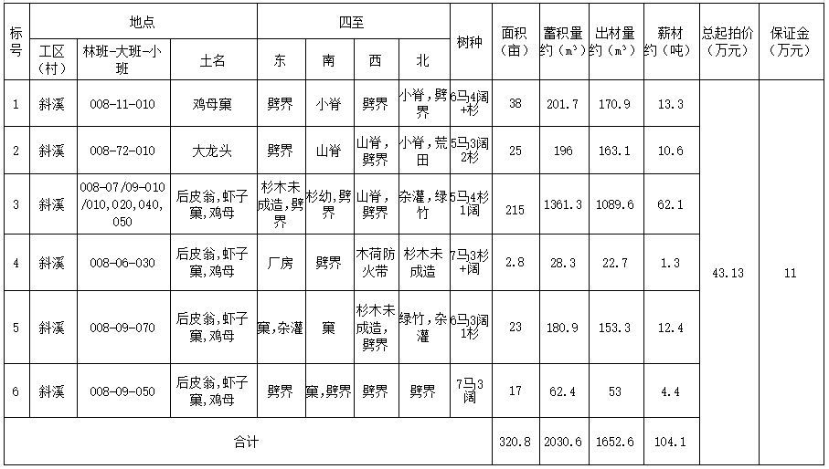 南平市延平区炉下镇斜溪“鸡母窠、大龙头等”6片山场的林木生产销售权(整体竞拍)