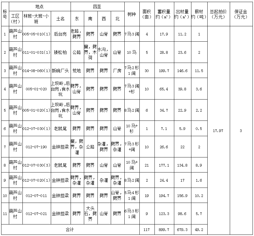 南平市延平区太平镇葫芦山村“后台岗、矮松柏等”11片山场的林木生产销售权(整体竞拍)