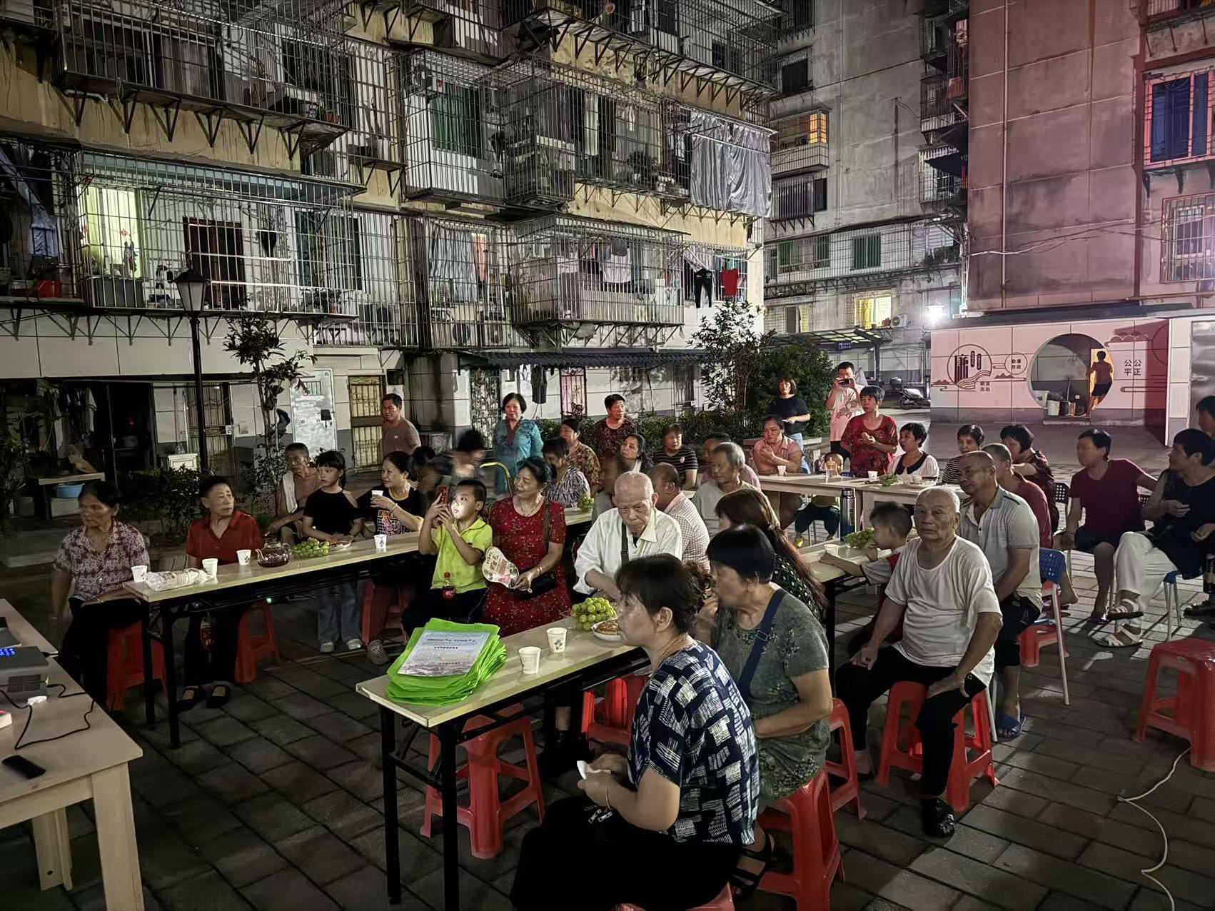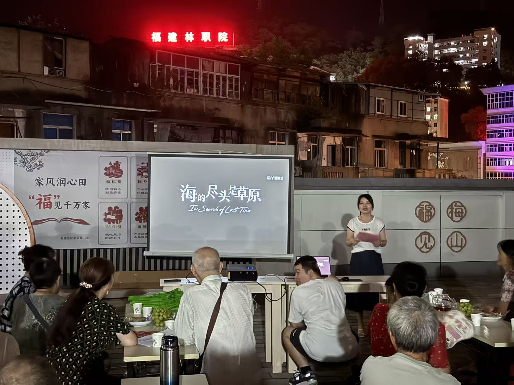 国庆、中秋佳节将至,民族团结之花正艳。为深入推进民族团结进步宣传月活动,铸牢中华民族共同体意识,促进辖区各民族交往交流交融,营造“中华民族一家亲,同心共筑中国梦”的浓厚氛围,9月26日晚,梅山街道自强社区联合共建单位延平区政务服务中心在八四五一厂小区开展“福籽同心爱中华,民族团结一家亲”民族团结进步宣传月活动。此次活动结合中秋佳节,让民族团结理念与团圆和谐的中秋文化交织共鸣。 活动现场放映民族团结题材影片《海的尽头是草原》,通过“三千孤儿入内蒙”真实历史,展现内蒙古牧民收养南方孤儿的感人故事,展现中华民族多元一体的格局和各族人民守望相助、共同奋斗的情谊,激发大家的爱国热情与民族认同感。 活动间隙还设置了民族团结及中秋佳节有奖知识竞答环节,在轻松愉快的互动中,增进大家对各民族文化的了解和尊重,巩固民族团结的思想基础。