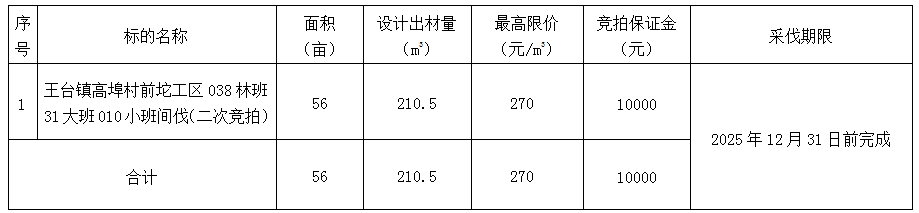 南平市延平区王台镇高埠村前坨工区间伐木材生产作业承包权竞拍(二次竞拍)