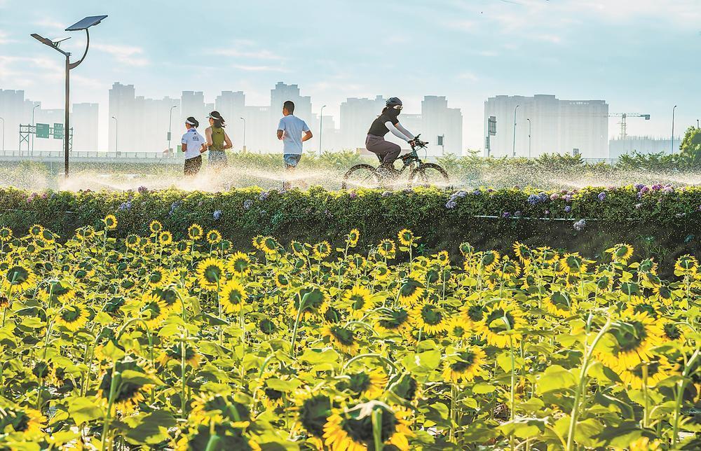 图为18日,市民游客在向日葵花田间运动游玩。 近日,位于厦门市翔安区凤翔街道的西岩山都市田园10万株向日葵迎来最佳观赏期,游客纷至沓来。 西岩山都市田园是翔安区“乡村振兴示范工程”的标杆项目,依托西岩山片区2252亩优质耕地资源,创新打造“生产+文旅”融合发展新样板,激发“城中央田园活力”。 陈瑞坤 摄影报道 |
