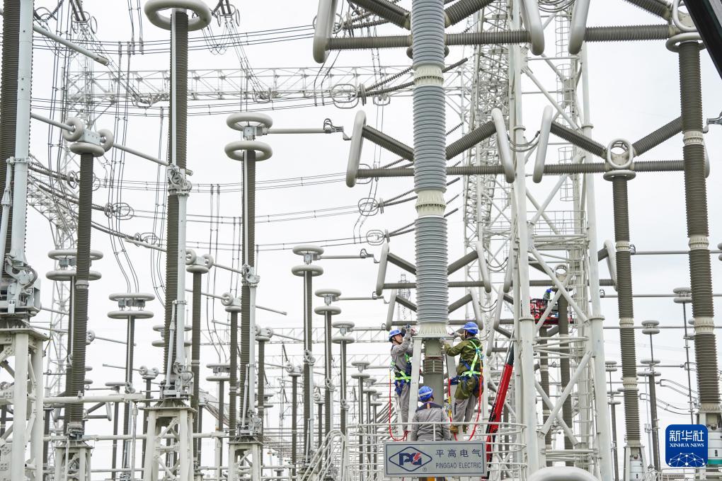 10月20日,安徽送变电工程有限公司检修人员在古泉换流站进行检修作业。 10月17日至10月23日,准东-皖南±1100千伏特高压直流输电工程的受端站——安徽宣城古泉换流站迎来年度停电检修。国网安徽电力的900余名电力检修人员对古泉换流站进行集中检修,总计开展检修任务4525项,为长三角地区今冬明春可靠用电提供保障。准东-皖南±1100千伏特高压直流输电工程起于新疆昌吉换流站,止于安徽古泉换流站,是目前世界上电压等级最高、输送距离最远、输送容量最大的输电工程。 新华社记者 杜宇 摄