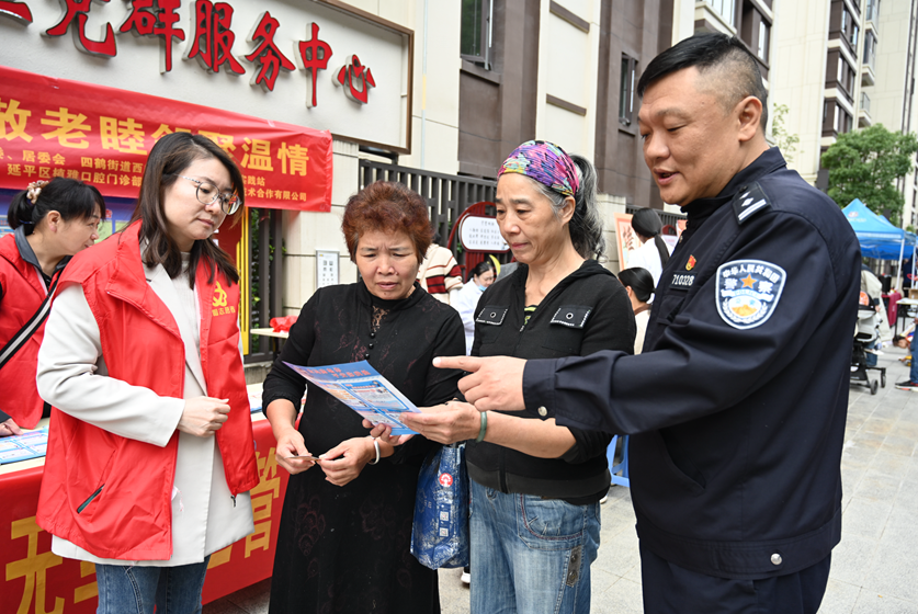 “阿姨,您看这个防诈骗手册,遇到陌生电话让您转账一定要多核实。”志愿者耐心地向老人们普及防骗技巧。结合活动,志愿者们向老人发放创建文明城市、垃圾分类、消防安全、平安三率、禁毒、防诈骗、廉洁文化、移风易俗、全民健康网格化服务、网络安全等各类宣传资料。退休党员林大伯看完廉洁宣传单竖拇指:“内容都是干货,比讲道理管用,希望多办这类活动!”