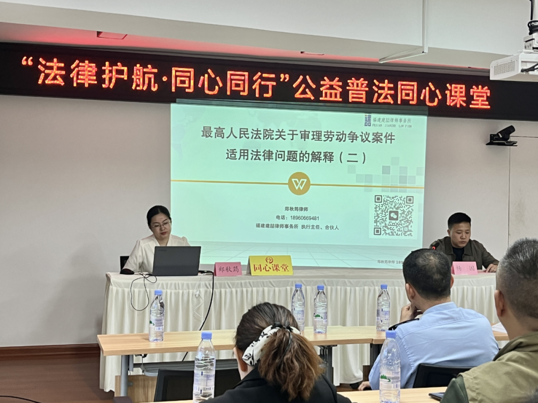 福建建喆律师事务所执行主任郑秋筠律师作《新劳动争议司法解释下劳动用工风险防范》主题交流,课程采用“以案释法”的方式,直观阐释了新司法解释在赋能企业内部管理中的落地应用,为学员提升合规经营水平提供了实用的操作指引,极具指导意义,引得现场热烈反响。 课后,两位讲师与学员们深入交流,针对大家普遍关心的企业合同规范、医社保缴纳及劳动用工争议等问题,给予了专业而详尽的解答。大家纷纷表示通过此次学习交流要将学习内容学以致用,共同营造更高质量的法治化营商环境,不断书写延平区民营经济高质量发展的新篇章! |