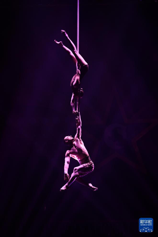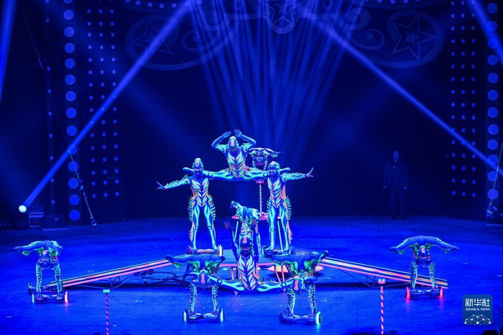 11月1日,演员在第八届中国国际马戏节开幕式上表演。 11月1日,第八届中国国际马戏节在广东横琴长隆卡卡剧场开幕。本届马戏节以“世界马戏 汇聚横琴”为主题,汇聚了来自全球的18支顶尖马戏团队,近500名艺术家同台献艺,共享国际最新马戏艺术发展成果。 新华社记者 肖恩楠 摄