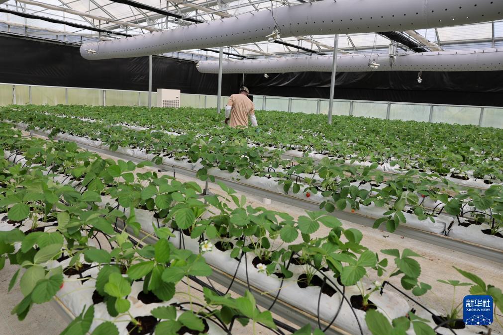 这是11月3日在文莱斯里巴加湾市郊一处农业科技产业园拍摄的运用中国农业技术和设备培育出的草莓。 近年来,文莱政府不断深化与中国在农业领域的交流合作。在文莱斯里巴加湾市郊一处农业科技产业园,通过中国沙培技术成功种植的网纹蜜瓜近日喜获丰收,在当地市场很受欢迎。此外,该产业园还利用中国先进农业技术及农业设备开展草莓、茄子、辣椒等果蔬的培育种植,在为文莱市场提供高品质果蔬产品的同时,进一步推动文莱农业现代化发展。 新华社记者 李萌 摄