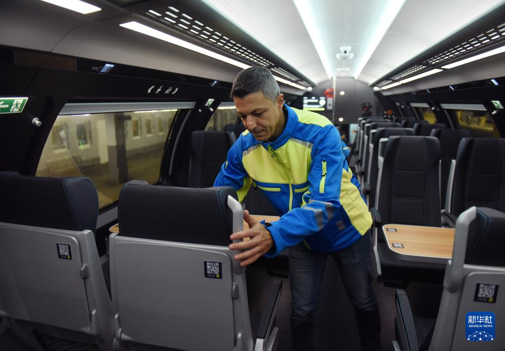 11月3日,在奥地利维也纳,奥地利西部铁路公司员工在车厢内调整座椅靠背。 由中国企业制造的双层列车日前在奥地利首都维也纳亮相,将用于维也纳与萨尔茨堡两座城市间客运铁路运营。这是中国制造双层列车首次正式投入奥地利客运铁路系统。 新华社记者 贺灿铃 摄 |