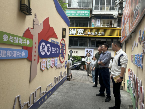 在讲解员的引导下,领导班子依次参观了各主题展区。禁毒宣传示范街充分依托周边步行街人流量大、青年群体集中的区位优势,创新宣教模式,将禁毒知识有机融入群众“衣食住行”场景,通过案例解析、互动体验等形式,全方位、多角度揭示毒品的种类特征、严重危害及禁毒历史沿革,构建起贴近生活、触及内心的禁毒宣传矩阵。