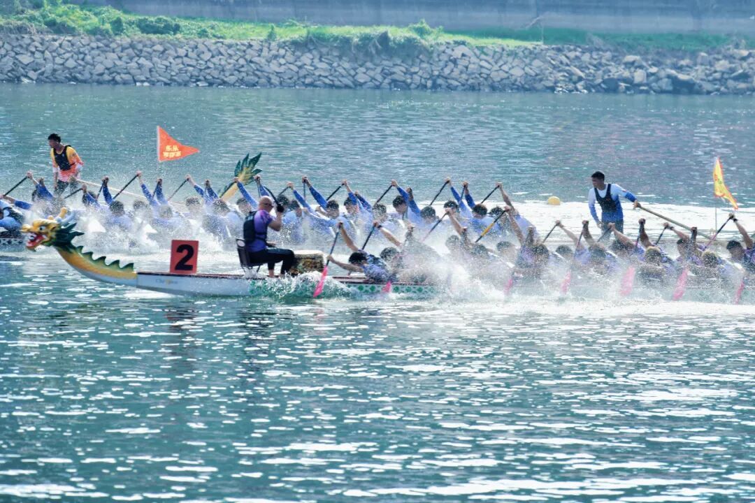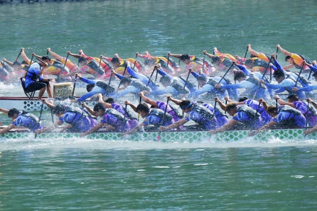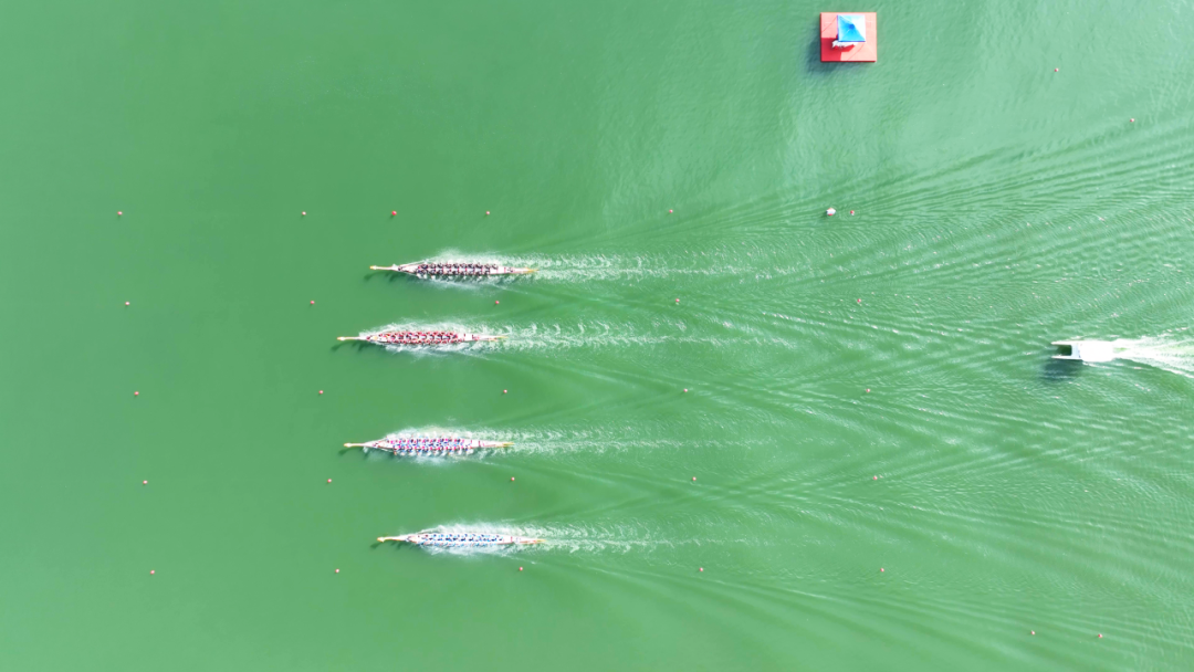 赛场内,创新升级的赛制是最大亮点。专业男子组首次采用2000米追逐赛,多条龙舟在弯道激烈竞逐、上演水上“漂移”,现场欢呼不断,将速度与激情推向高潮。