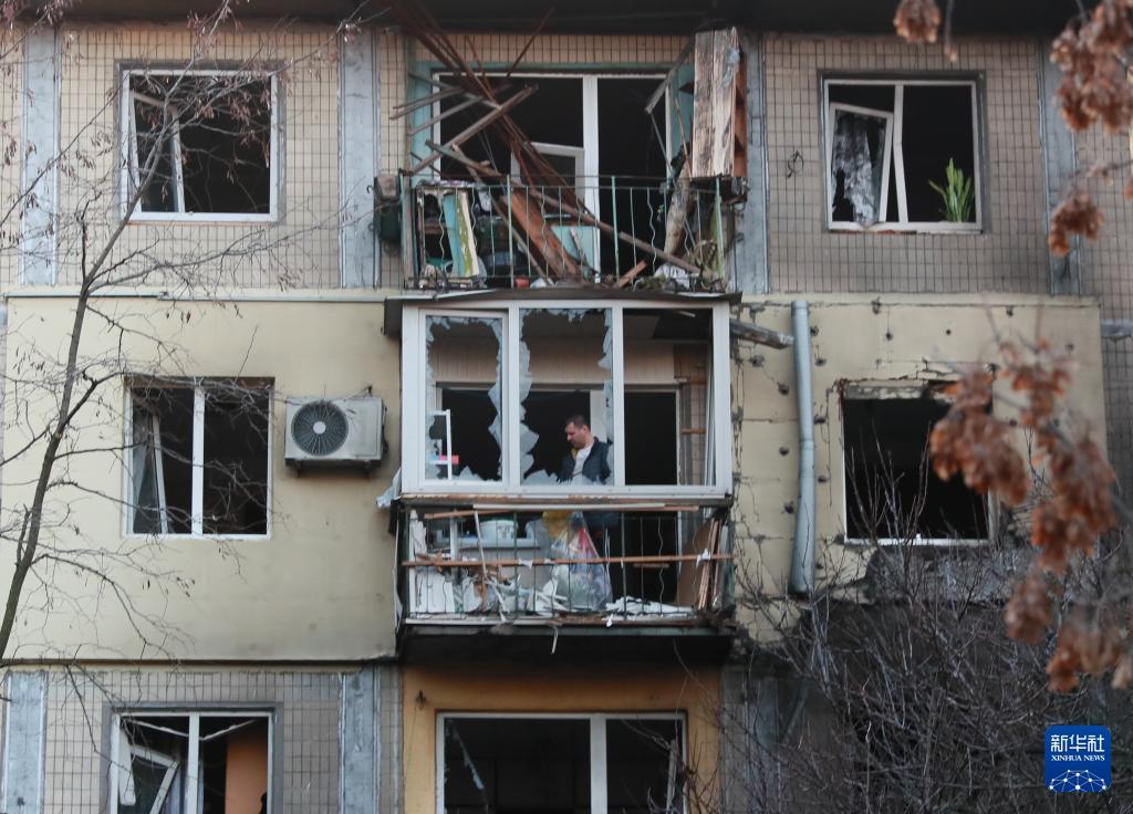 11月14日,在乌克兰首都基辅市第聂伯区,当地居民对遭受空袭损毁的房屋进行清理。 当天凌晨,基辅遭到俄军大规模空袭。 新华社记者 李东旭 摄 |