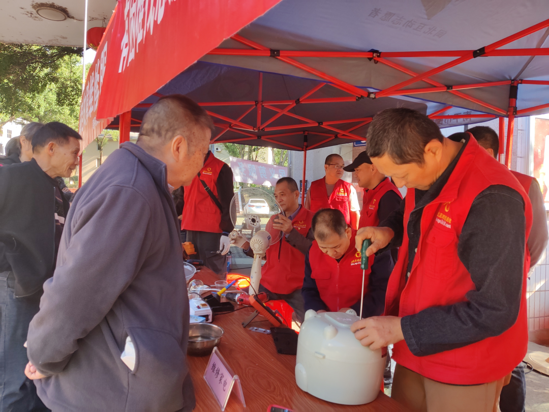 在家电维修摊位上,经验丰富的维修志愿者耐心地为村民们检修电风扇、电水壶、电饭煲等小家电,他们用专业的维修技术让一件件“罢工”的电器重获新生;便民义剪区,两位理发师志愿者认真倾听村民需求,精心修剪发型,娴熟的手艺让乡亲们面貌焕然一新;法律咨询台前,专业律师志愿者针对村民关心的邻里纠纷、婚姻家庭、赡养继承等法律问题,提供专业解答和法律援助指引,帮助村民增强法律意识,维护自身合法权益。