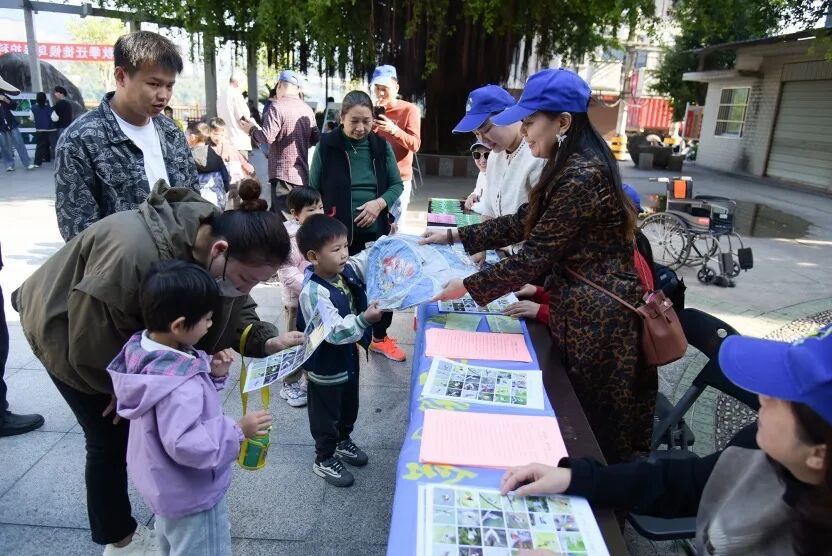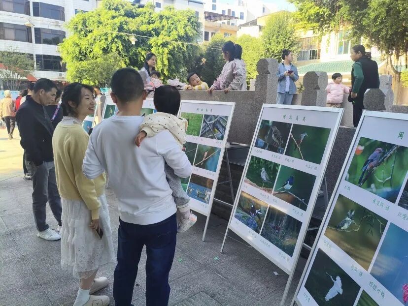 活动现场,南平市观鸟会的老师们精心筹备了鸟类主题展板、观鸟手册、科普传单等丰富物料,吸引了大批村民驻足围观。展板上,内容涵盖从田间地头常见的麻雀、喜鹊,到被誉为“林中仙子”的国家二级保护动物白鹇等百余种鸟类,高清实拍图片搭配精炼易懂的文字说明,详细介绍了每种鸟类的形态特征、栖息环境与生活习性,让村民们直观感受鸟类的灵动之美。志愿者们化身“自然讲解员”,围绕展板内容生动解读,用通俗的语言科普候鸟迁徙的生态价值,将专业知识转化为易懂常识,大人小孩们听得津津有味,不时驻足讨论,沉浸在奇妙的鸟类世界中。 除了直观的展板展示,老师们架设了观鸟设备,供村民们互动体验,志愿者们则用接地气的话语向村民科普非法猎捕、伤害候鸟的法律后果,普及候鸟保护对维持生态平衡的重要意义,引导村民自觉抵制伤害野生动物的行为。活动现场还设置了互动问答环节,凡是能准确背诵8种不同候鸟名称的“小小生物家”,均可获得定制小书包奖励,孩子们踊跃参与、积极抢答,现场氛围热烈融洽。