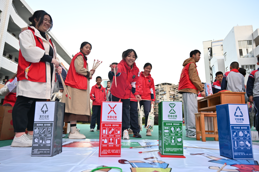 “今天的活动太有趣了!套圈投壶的时候我一开始把电池投错了,还好老师及时提醒,现在我记牢了有害垃圾要单独放!回家我就给家里的垃圾桶贴标签,教爸爸妈妈一起做环保小卫士!”学生代表李同学举着印有“垃圾分类人人有责”的冰箱贴奖品,脸上洋溢着兴奋的笑容。为深入贯彻生态文明建设重要理念,响应生活垃圾全程分类管理号召,11月19日下午,四鹤街道新时代文明实践所、西门桥社区新时代文明实践站联合区妇联、区疾控中心,在南平师范学校附属小学共同开展“垃圾分类小能手,我是环保小卫士”校园主题教育实践活动,该校全体师生踊跃参与,现场氛围热烈。 “这样的主题教育实践活动非常有意义,相比传统的课堂教学,互动游戏更能激发学生的学习兴趣。看到同学们积极参与、认真思考的样子,我相信他们对垃圾分类知识的理解会更深刻,环保意识也会在潜移默化中增强,为后续开展环保教育工作奠定了良好基础。”该校杨老师表示。 活动伊始,学校老师为同学们带来了生动的垃圾分类知识宣讲。老师结合生活实例,详细讲解了垃圾分类的重要意义、“可回收物、有害垃圾、厨余垃圾、其他垃圾”的分类标准以及日常投放垃圾的注意事项,通过提问互动的方式引导同学们主动思考,让青少年对垃圾分类知识有了更系统、全面的认识,进一步增强了环保意识。 知识宣讲结束后,三大互动游戏区迅速成为“人气焦点”。“分类圈圈乐”前,同学们踮着脚尖、皱着小眉头认真思索垃圾类别,手持贴有“废纸、玻璃渣、过期化妆品”等标签的套圈,精准投放到对应垃圾桶时,周围立刻响起“太厉害啦”的欢呼;“分类趣投壶”旁,参与者们屏气凝神,将写有垃圾名称的箭瞄准贴有分类标识的“垃圾壶”,投中正确分类的同学高举手臂,自豪地向同伴展示成果;“夹球促分类”游戏则考验手眼协调能力,大家用筷子小心翼翼夹起贴有垃圾标签的乒乓球,连续放对三个的同学拿到卡通环保袋奖品时,兴奋得蹦了起来。整个游戏过程中,志愿者和老师在旁及时指导,同学们在欢声笑语中把理论知识转化为实践能力,垃圾分类的种子在心中悄然发芽。 四鹤街道西门桥社区党委书记表示:“‘教育一个孩子,影响一个家庭,带动整个社区’是我们开展此次活动的核心思路。让孩子们成为垃圾分类的‘宣传员’‘践行者’,助力环保理念从校园延伸到家庭、辐射到社区,着力实现垃圾分类工作在基层落地生根。”
