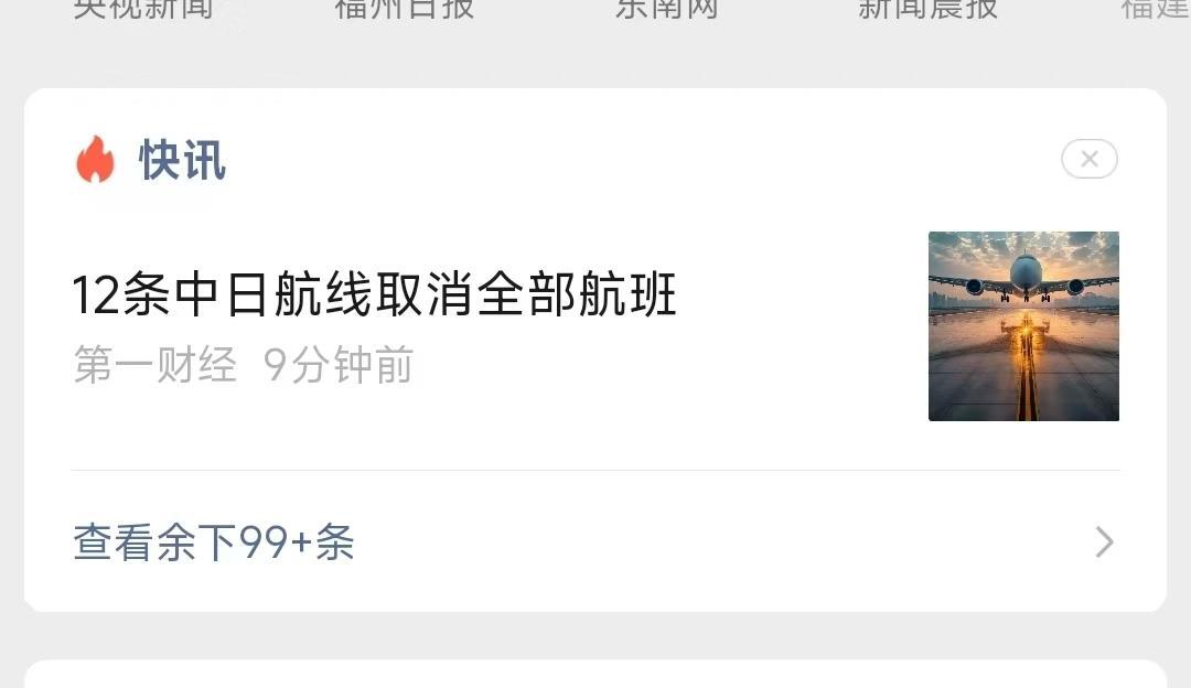 12条中日航线航班取消 福建游客赴日团队游基本取消