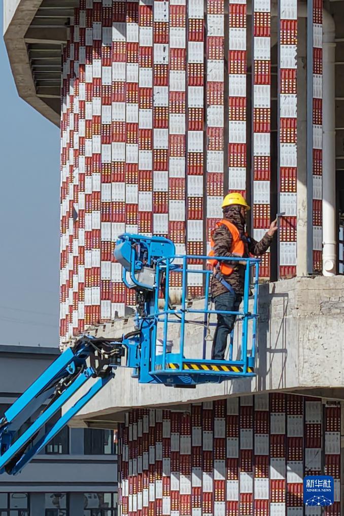 11月26日,中铁十一局建设者在浙江工业职业技术学院新昌学院综合楼进行幕墙施工。 浙江工业职业技术学院新昌学院是浙江省绍兴市新昌县正在建设的第一所高等教育学府,是浙江省"千项万亿"工程之一。 项目占地约600亩,建成后可容纳约6000名在校师生。学院将以全日制高等学历教育为主,同时兼具成人教育、职业培训、技术创新、社会服务、文化传承与创新、国际交流与合作等功能。 目前,项目的主体结构和二次结构已全部完工,一二期装饰装修工程已进入收尾阶段,三期装饰装修工程以及室外管网、景观园林已进入大面积施工阶段。 新华社记者 黄宗治 摄