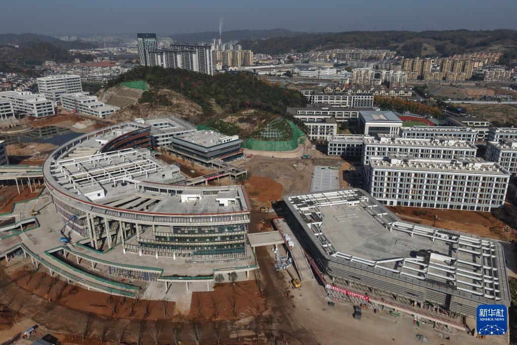 建设中的浙江工业职业技术学院新昌学院(11月26日摄,无人机照片)。 浙江工业职业技术学院新昌学院是浙江省绍兴市新昌县正在建设的第一所高等教育学府,是浙江省"千项万亿"工程之一。 项目占地约600亩,建成后可容纳约6000名在校师生。学院将以全日制高等学历教育为主,同时兼具成人教育、职业培训、技术创新、社会服务、文化传承与创新、国际交流与合作等功能。 目前,项目的主体结构和二次结构已全部完工,一二期装饰装修工程已进入收尾阶段,三期装饰装修工程以及室外管网、景观园林已进入大面积施工阶段。 新华社记者 黄宗治 摄