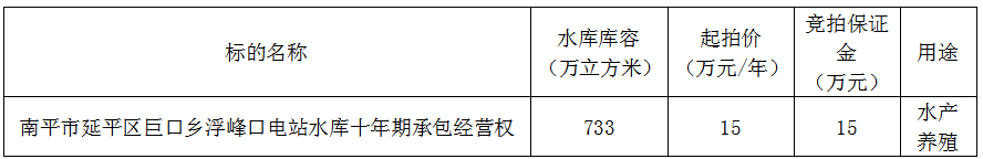 南平市延平区巨口乡浮峰口电站水库十年期承包经营权