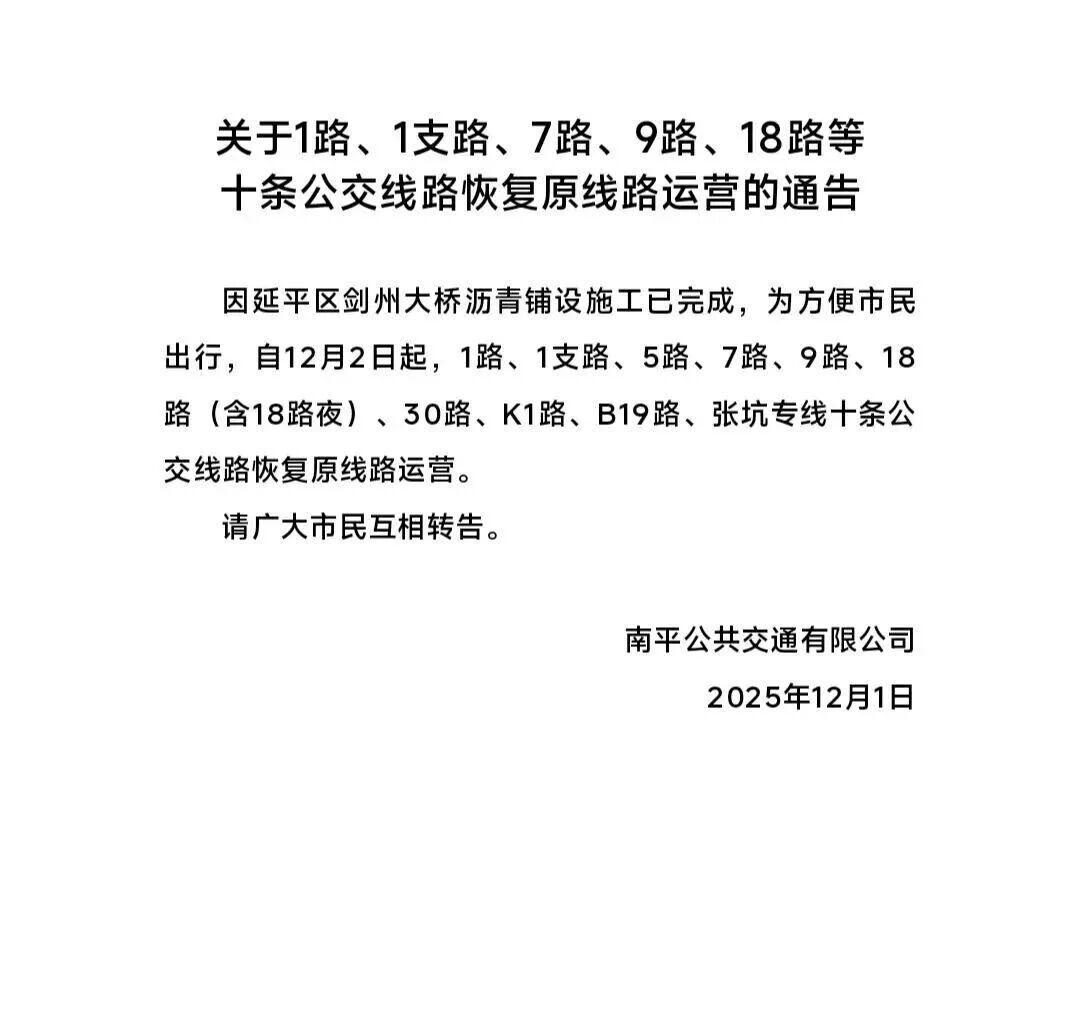 2025-12-02 09:11:33 作者: 来源:南平公共交通有限公司 责任编辑:肖练冰