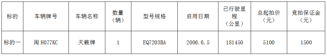 受委托,定于2025年12月16日上午9:00,通过延平区阳光平台(http://ypygpt.zgpm.com/)举行公开网络竞拍: 一、竞拍标的:天籁牌闽H077KC轿车转让,具体详见下表: 天籁牌闽H077KC轿车转让一览表