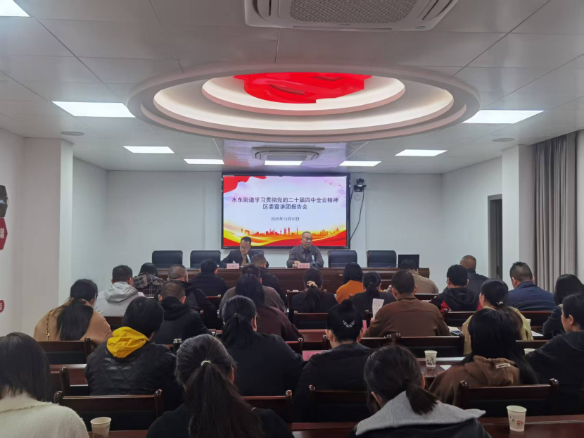 区委宣讲团成员、区委二级调研员张道强到水东街道宣讲党的二十届四中全会精神,围绕党的二十届四中全会的重大意义、“十四五”时期我国发展取得的重大成就、“十五五”时期的重要地位与发展环境,以及经济社会发展的指导方针、主要目标、战略任务和重大举措等方面,进行了系统阐释和深入解读。