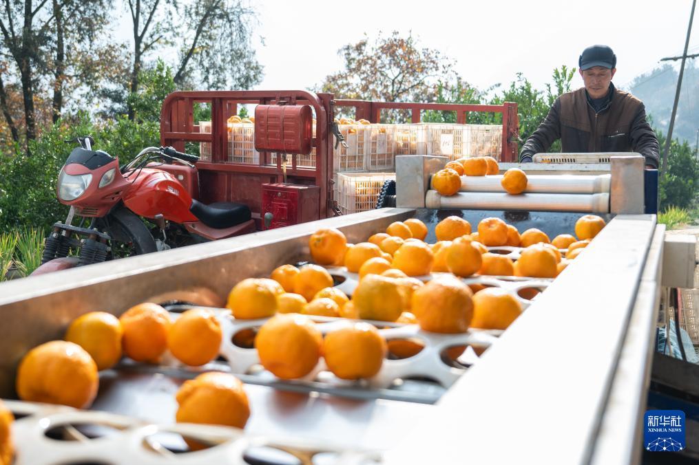 12月11日,在湖北省宜昌市长阳土家族自治县渔峡口镇岩松坪村,村民在整理分拣刚采摘的清江椪柑。 近日,湖北省宜昌市长阳土家族自治县渔峡口镇的清江椪柑进入采销旺季。2024年,全县清江椪柑种植规模达7万亩,年产值约5亿元。产品销往全国29个省市,并出口到马来西亚、加拿大、西亚等国家和地区。清江椪柑已成为当地乡村振兴战略的支柱产业。 新华社记者 杜子璇 摄
