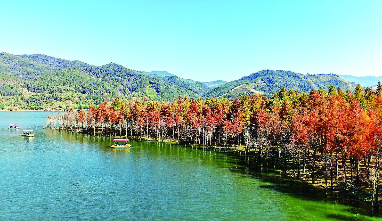 14日,游客在斜溪村湖面泛舟,欣赏落羽杉。最近,延平区炉下镇斜溪村落羽杉进入最佳观赏期,吸引不少游客前来打卡。近年来,斜溪村开展环境污染治理,引进环保治理技术,试点“循环经济”“净水工程”……在一系列严格的环保措施和修复治理下,斜溪村的生态环境持续改善。绿水青山入画来,举目之处皆风景,绿色生态成为乡村振兴的支撑点。 (朱宇 摄) |