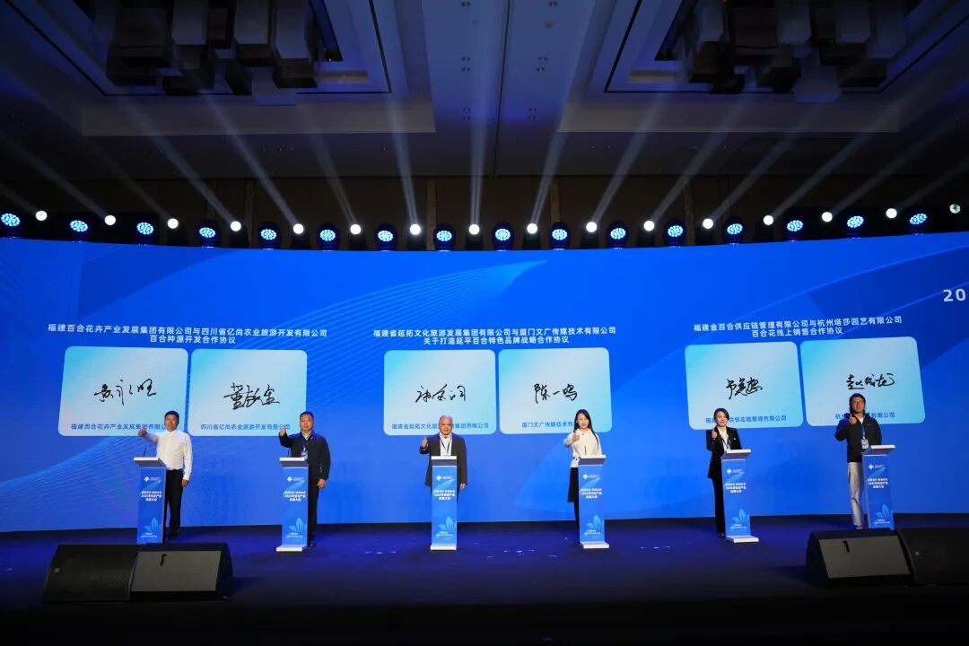 协同创新迈出关键步伐。“北京林业大学园林学院南平百合研究院”正式成立,推动校地合作进入精准攻关新阶段;“全国百合鲜切花主产区合作联盟”深化合作,突破区域壁垒。现场签约涵盖校地合作、山海协作、产业延伸、金融赋能等多领域,中国银行南平分行、南平农商银行共同为延平区花卉协会提供6亿元授信,为产业升级注入金融活水。