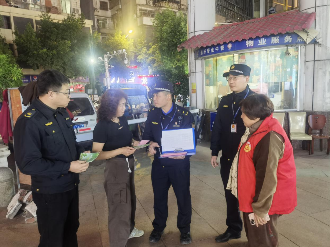 本次行动经过精心规划部署,确保整治工作高效有序推进。联合专班先后前往创世纪步行街、九峰公园等重点区域,重点排查整治占道经营、噪音扰民、乱堆乱放等问题,同步开展环境巡查与文明劝导工作。行动中,工作人员坚持“教育为主、处罚为辅”原则,对不文明行为耐心劝导纠正,向商户与市民普及城市管理相关规定,引导大家自觉遵守公共秩序。