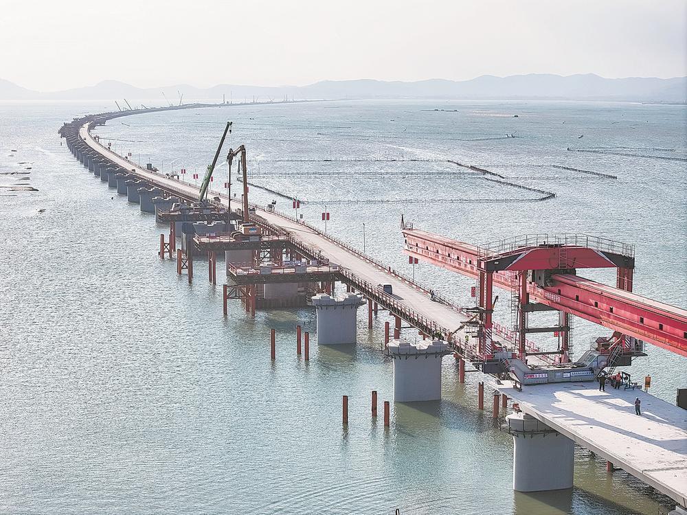12月24日,东山县诏安湾海域,随着架梁机将一榀数百吨的箱梁平稳、精准架设到东山跨海特大桥桥墩上,漳汕高铁正式进入海上架梁施工阶段。东山跨海特大桥全长20.262公里,是漳汕高铁重点控制性工程之一。郝春娥 摄 东南网12月25日报道 (福建日报记者 方金春 张辉 林霞) 隆冬时节,八闽处处活力澎湃、万象开新。 《福建省县域重点产业链发展白皮书(2025)》发布,“全省县域GDP年均复合增长率5.6%”“千亿县从14个增长至18个”,一个个数据传递经济发展信心;举办“炫彩中国·清新福建”全球推介会、启动“购在中国 全闽乐购”消费季,一场场活动激发消费热情…… 在“十四五”规划收官之年,全省紧扣“奋勇争先、再上台阶”年度主题,扎实做好经济社会发展各项工作,确保收好官交好卷。 拼在当下,谋在长远。全省各地各部门因地制宜、科学谋划,切实迈好“十五五”发展的第一步,奋力谱写新征程新福建建设新篇章。 冲锋冲刺 以决战决胜之姿打好收官战 10月11日,装载首炉核燃料;11月3日,反应堆首次临界;11月22日,首次并网成功,向电网输出第一度电……进入四季度以来,漳州核电2号机组建设吹响冲锋号,加速全面商运步伐。 作为全球最大的“华龙一号”核电基地,漳州核电规划建设6台机组。目前,一期工程两台机组均已并网发电。基地全面投产后,每年可提供超600亿千瓦时清洁电能,是厦门市、漳州市用电总和的75%。 棋到收官、赛近终点,时间的进度条一点点逼近年终岁尾;登顶时刻、冲刺关头,拼搏的身影跃动在福建山海城乡之间。 拼的是实绩实效,在善作善成中积蓄发展势能—— 11月28日,福州长乐国际机场二期扩建工程新建主跑道正式亮灯,标志着工程进入收尾阶段,朝着2026年投用目标全力冲刺。这是打造全省首个“零换乘”立体枢纽、真正实现“高铁进机场”的项目,建成后将推动机场迈入“双跑道、双航站楼”时代。 拼的是责任担当,在攻坚克难中触摸民生温度—— 12月1日,宁德上白石水利枢纽工程正式立项。作为全省首个获国家审批立项引入民营资本的“两重”水利项目,该工程建成后可使福安城区防洪标准由20年一遇提高到50年一遇,解决闽东60多万群众的洪涝之患,并为福建电网提供优质电能。 拼的是能力作风,在锐意进取中彰显创新实力—— 12月20日,厦金大桥(厦门段)项目完成全桥首榀海上装配式大节段钢箱梁架设。项目通过“搭积木”式的工厂化、装配化工艺,结合钢梁大节段整体吊装技术,不仅将海上作业效率提升约4倍,还显著降低对湾区水动力的影响,实现对中华白海豚栖息地“零干扰”。 冲锋冲刺!满弓紧弦推进的背后,是福建敏锐把握时与势,深刻洞察危与机,跳起摸高挑大梁,俯身躬耕扛重担。 2024年10月,习近平总书记再次踏上福建的土地,从美丽海岛到经济特区,看百舸争流、千帆竞发。对福建的下一步工作,他指出要在推动科技创新和产业创新深度融合上闯出新路,在全面深化改革、扩大高水平开放上奋勇争先,在推动区域协调发展和城乡融合发展上作出示范,在提升文化影响力、展示福建新形象上久久为功。 思想如炬,照亮前路;初心如磐,接续奋斗! 省委书记周祖翼在全省领导干部大会上强调,以实际行动回报习近平总书记的关心厚爱,为以中国式现代化全面推进强国建设、民族复兴伟业作出福建新的更大贡献。 明确任务书、时间表、路线图。 带着感情干、责任拼、使命闯。 一年来,全省党员干部牢记嘱托再出发,持续深化拓展“三争”行动,牢牢把握高质量发展这个首要任务,深入落实一揽子增量政策和存量政策,不断提振干事创业精气神,持续巩固经济回升向好态势。 走读福建,山海城乡,工地厂房,实验基地,在一张张收官答卷中纵览气象万千,在一条条昂扬曲线中感受活力奔涌。 全球最大26兆瓦级海上风电机组历时6年成功下线、全球首个兼备1000公里续航以及4C超充特性的磷酸铁锂电池历时8个月发布……随着高能级科技创新平台加速培育,“实验室”到“生产线”距离不断缩短,越来越多的科技成果高效转化,科技创新与产业创新深度融合。 中国(福建)自由贸易试验区迎来挂牌十周年,累计推出647项创新举措,其中全国首创289项,在全国复制推广35项;出台大陆首部促进两岸标准共通的地方性法规,鼓励两岸同胞携手,开展两岸标准化合作……发扬敢为人先、爱拼会赢的开拓创新精神,统筹推进深层次改革和高水平开放,福建高质量发展道路越走越宽广。 6个重点“产业飞地”“科创飞地”建设渐入佳境;龙岩、三明人均地区生产总值领跑全国20个革命老区重点城市;新增2个优势特色产业集群、1个现代农业产业园和7个农业产业强镇……新时代山海协作按下“升级键”,老区苏区振兴发展跑出“加速度”,乡村全面振兴激活“新引擎”。 《福建省民营经济促进条例》将于明年1月1日起施行;2025年中国民营企业500强榜单中福建企业入围数比上年增加6家;全省1.5万多家高新技术企业中民营企业占比95%以上……民营经济这片“森林”更加郁郁葱葱,民营企业和民营企业家发展信心更强、发展定力更稳、发展动力更足。 保持定力、持续用力、全面加力,全省上下正竞相发力、汇聚成势,全力以赴抢时间、谋项目、抓发展,以冲刺决胜之势努力完成全年目标任务。 向新向优 奋力把新福建蓝图变为美好现实 扭住目标不放松,一张