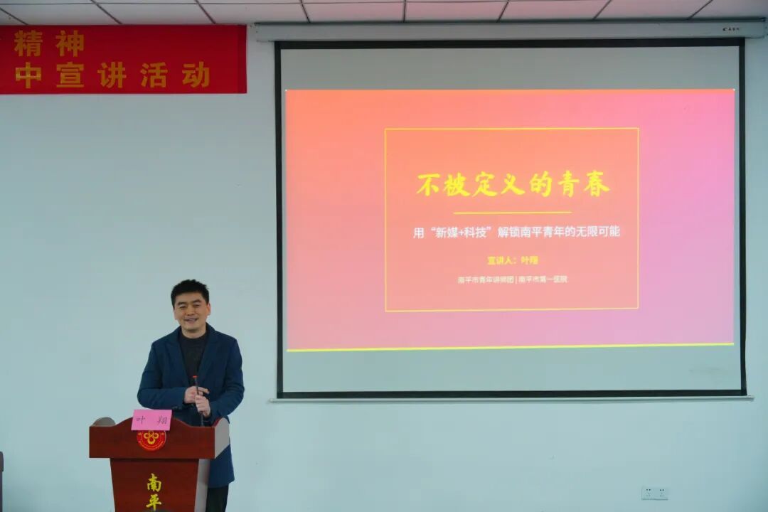 南平市第一医院门诊部副主任叶翔以“不被定义的青春”为主题展开宣讲,讲述了用AI优化医院服务、以短视频传播南平朱子文化、赋能律师群体普法等经历,鼓励青年学子打破标签束缚,拥抱新技术、传承本土文脉、培养跨界思维,以奋斗之姿解锁潜能,在中国式现代化的伟大征程上,书写无愧于时代的青春答卷。