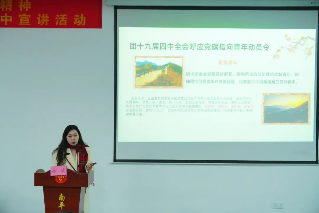 为深入学习宣传贯彻党的二十届四中全会精神,引领广大青年学子深刻领会全会精神实质、把握实践要求,12月25日,“党的二十届四中全会精神南平青年宣讲团走进延平集中宣讲”活动在南平市第八中学顺利举办。