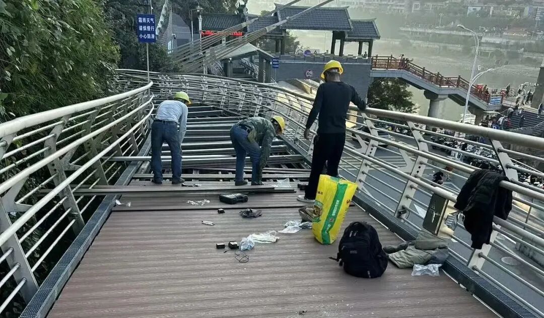 原九峰山栈道入口段全长66米,为木质结构。因长期使用及自然损耗,出现面板破损、防滑性能下降等情况,既影响市民休闲体验,也存在一定安全隐患。市委、市政府高度重视民生实事,市领导多次深入延平区调研指导,着力推动解决群众“急难愁盼”问题。延平区积极回应群众关切,以此次改造为契机,将该项目纳入城区公园灾后改造工程,由区城市管理和综合执法局组织实施,于12月18日起进行封闭施工。