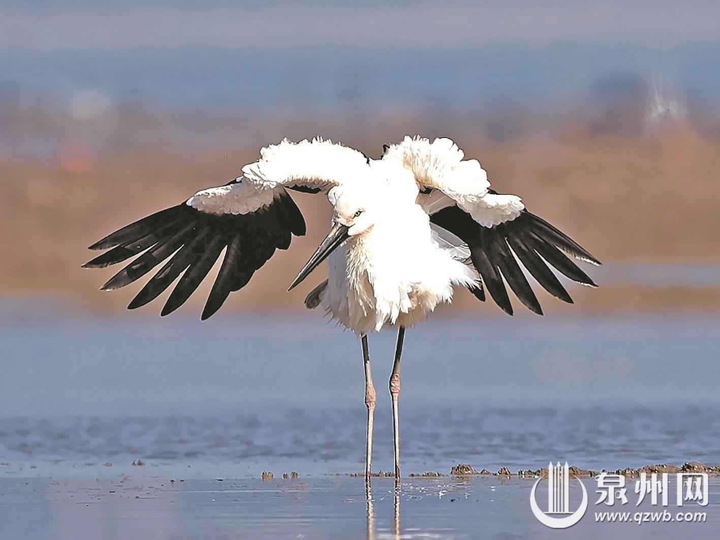 近日,泉州市观鸟学会会员先后在泉州湾水头外线、锦江外线、石狮湿地公园等地观测并拍摄到国家一级保护动物东方白鹳的身影。自2021年以来,东方白鹳已多次造访泉州,成为我市生态环境持续向好的生动见证。 “这只东方白鹳已经停留超过十天,是历次造访中停留时间较长的一次。”泉州市观鸟学会会长吴轲朝介绍,2021年12月9日,东方白鹳出现在泉州湾,并在江南公园、晋江南岸生态公园、水头外线湿地、石狮湿地公园停歇,这是该物种在泉州的首次记录。2024年越冬季,观鸟爱好者再次在石狮、晋江拍摄记录到东方白鹳。不过,它们一般停留两三天便会离开,而今年发现的这只东方白鹳停留时间明显延长。他推测,这可能与本地气候、食物资源及栖息地环境的改善有关。 据介绍,东方白鹳是鹳科鹳属的大型涉禽,通体以白色为主,肩羽黑色并带有紫铜色光泽,具有红色的长腿与黑色的长喙。该物种素有“鸟界国宝”之称,在全球种群总数量不到万只,属全球濒危物种之一。它们主要繁殖于中国东北及俄罗斯远东地区,冬季南迁至长江中下游流域越冬,在福建虽有分布,但极其罕见。(泉州晚报融媒体记者张晓玲) |