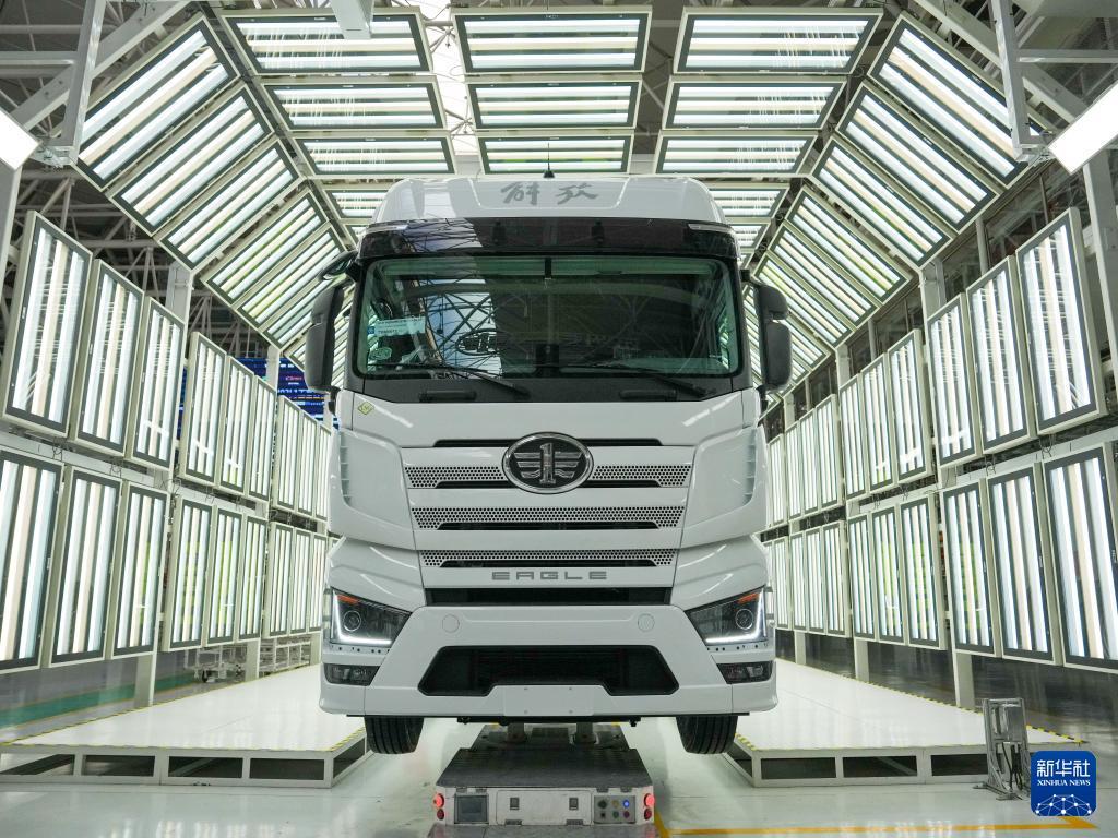 1月4日,在一汽解放J7整车智能工厂,车辆等待下线。 新年伊始,坐落于吉林省长春市的一汽解放J7整车智能工厂内,工人们开足马力抓紧生产,力争实现新年“开门红”。2025年,一汽解放全年销售整车突破28万辆。 新华社记者 张楠 摄