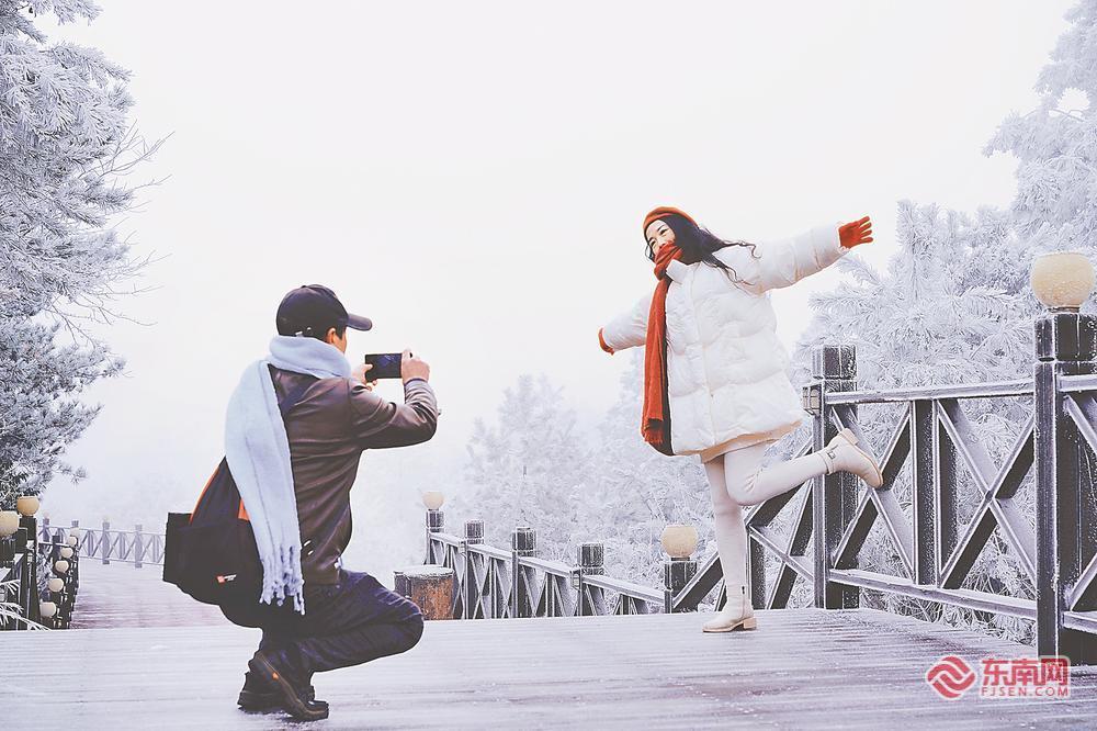 6日,受强冷空气影响,泰宁县峨嵋峰迎来雾凇美景,漫山枝条被剔透冰凌包裹,冰晶在风中簌簌作响,南国山间尽显北国风情。不少游客踏着薄霜登山,或驻足观赏,或拍照留念,将这短暂的冬日美景定格。福建日报记者 庄紫怡 通讯员 张显超 李广 摄影报道 |