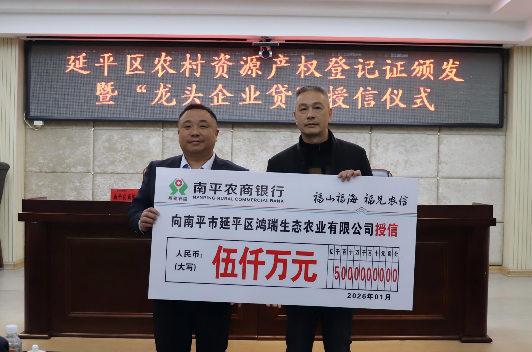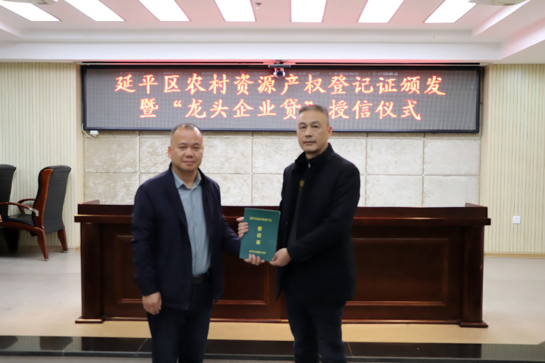 1月19日,延平区农村资源产权登记证颁发暨“龙头企业贷”授信仪式顺利举行。区政府副区长詹泉照向南平市延平区鸿瑞生态农业有限公司颁发编号为001号的农村资源产权登记证,标志着全区农村资源资产化改革迈出关键一步。区农业农村局、南平农商银行及相关企业代表共同出席见证。