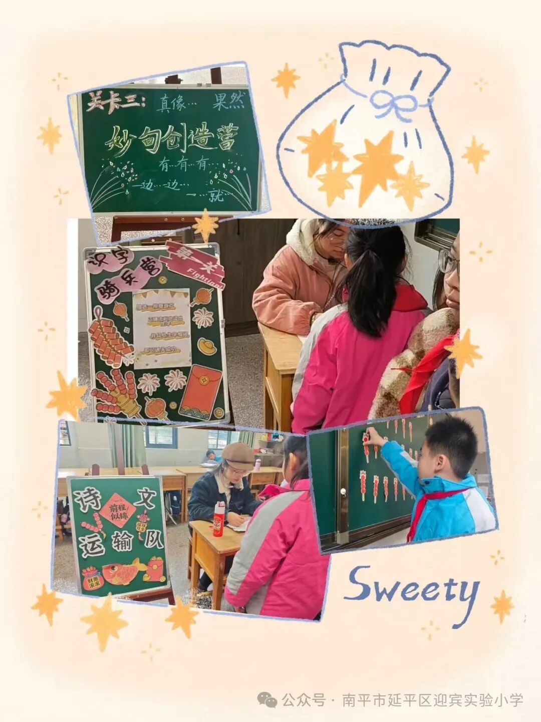 二年级语文老师们设计了“识字骑兵连”“诗文运输队”“妙句创编营”三大核心板块。在“识字骑兵连”中,孩子们通过抽取“糖葫芦”,读出拼音并组词,在趣味互动中提升识字能力;在“诗文运输队”里,孩子们自选喜欢的课文段落或诗句进行背诵,不仅能背准字音、不加字漏字,还能背出句子的感情,表现力十足;“妙句创编营”则考验孩子们的口语表达能力,根据给定的关联词,结合图片孩子们发挥想象,编出一个个脑洞大开的小故事。