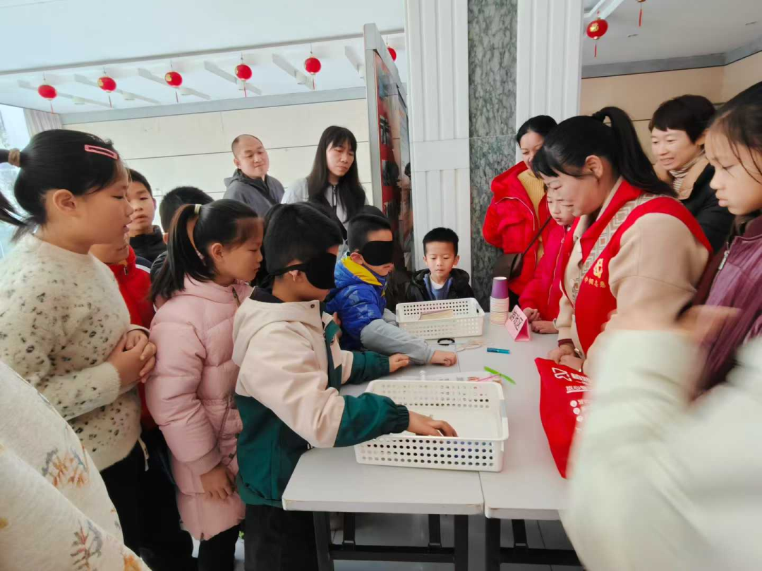 活动以沉浸式体验为核心,让孩子们在触摸、聆听与互动中,开启一场别样的“无障碍认知之旅”。活动伊始,盲文触摸阅读环节点燃了孩子们的好奇心,大家小心翼翼地伸出手指,触摸着盲文书籍与卡片上凹凸不平的点位,在志愿者的引导下,尝试识别简单的盲文数字、字母及“你好”“谢谢”等常用汉字,指尖的触感让孩子们对这种特殊的文字形式充满探索欲。