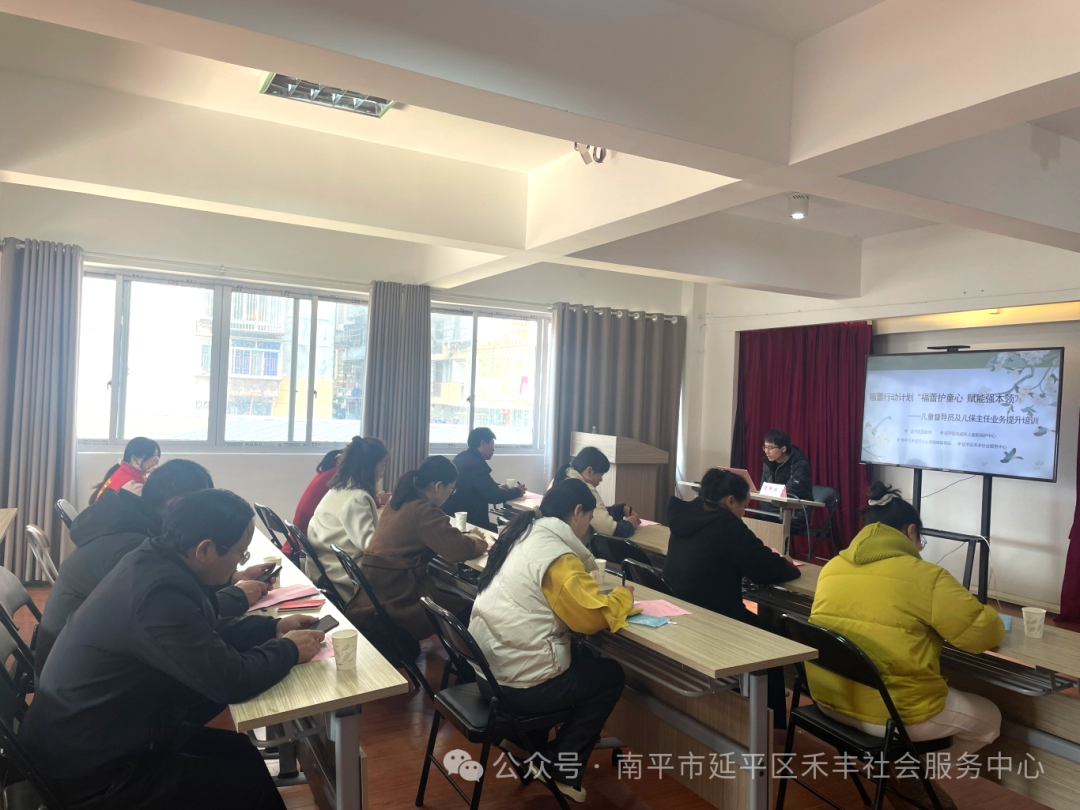 儿童督导员及儿保主任作为最基层的服务力量,是距离困难群体最近的“暖心人”,更是社会服务开展的重要基石,在儿童关爱平台中,他们承担着需求排查、政策传递、服务衔接、监护干预等关键职责,是打通儿童关爱服务“最后一公里”的核心纽带。 为强化基层儿童服务队伍专业能力,筑牢困境儿童与留守儿童关爱保护防线,2026年新年伊始,在延平区民政局、延平区未成年人救助保护中心指导下,延平区禾丰社会服务中心携手南平市未成年人心理健康辅导站开展“福蕾护童心・赋能强本领”儿童督导员及儿保主任业务提升培训,为基层儿童服务人员充电赋能。