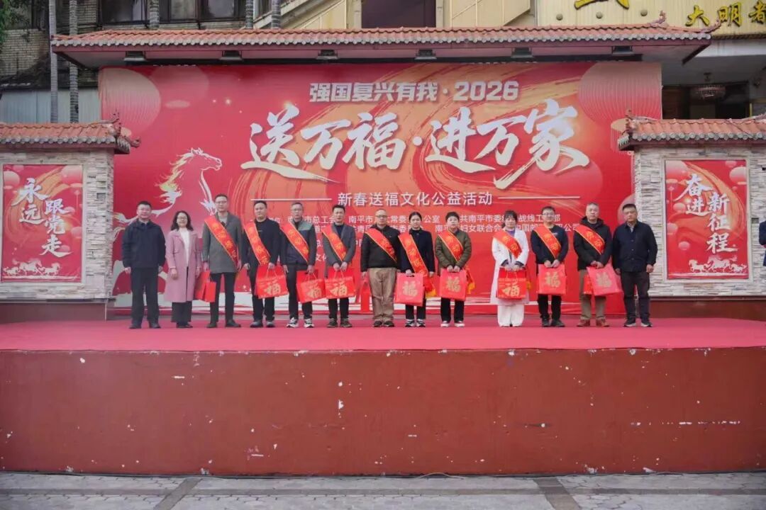 新春将至,福韵满延。1月30日上午,“强国复兴有我”2026年“送万福·进万家”新春送福文化公益活动在延平区激情广场热闹开启。市、区相关部门负责同志,我区劳模、新业态劳动者、干部职工代表等参加。