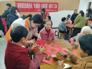 专业引导,传授剪纸技艺 活动当天,峡阳镇德胜礼堂内热闹非凡。社工们首先以生动有趣的方式向老人们介绍了剪窗花这一非遗文化的历史渊源和艺术价值,让大家对这项传统技艺有了更深入的了解。随后,社工、志愿者们穿梭在老人中间,积极引导协助他们进行剪纸。在社工和志愿者的鼓励和帮助下,老人们逐渐掌握了剪纸的技巧,脸上洋溢着自信和喜悦的笑容。