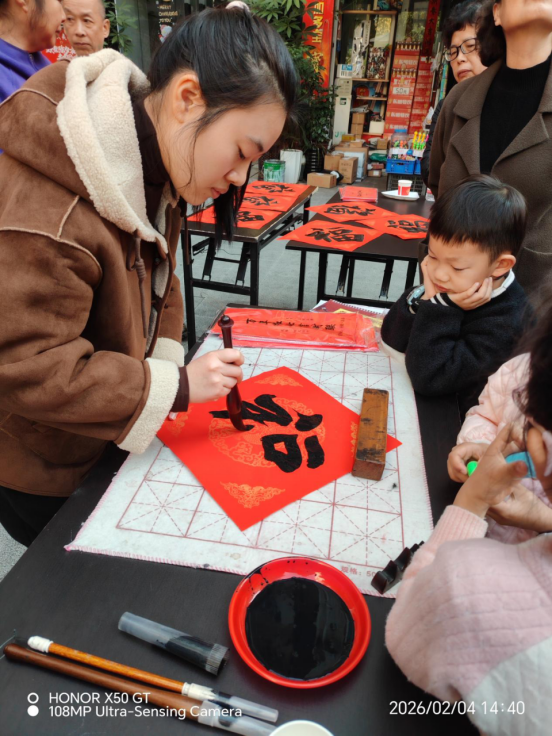 活动现场暖意融融、墨香四溢。受邀而来的书法家和书法爱好者挥毫泼墨,将廉洁寓意、新春祝福与勤学理念融入笔端,一幅幅笔力遒劲的春联跃然纸上,“廉风沐社区春满庭,勤学伴岁月福盈门”等特色春联,既饱含传统韵味,又传递正向价值,居民们争相挑选心仪的春联,脸上洋溢着喜悦的笑容。